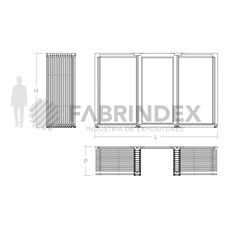 Com modelos de 24, 28, 32, 36 painéis deslizantes de uma face e 3 painéis fixos.