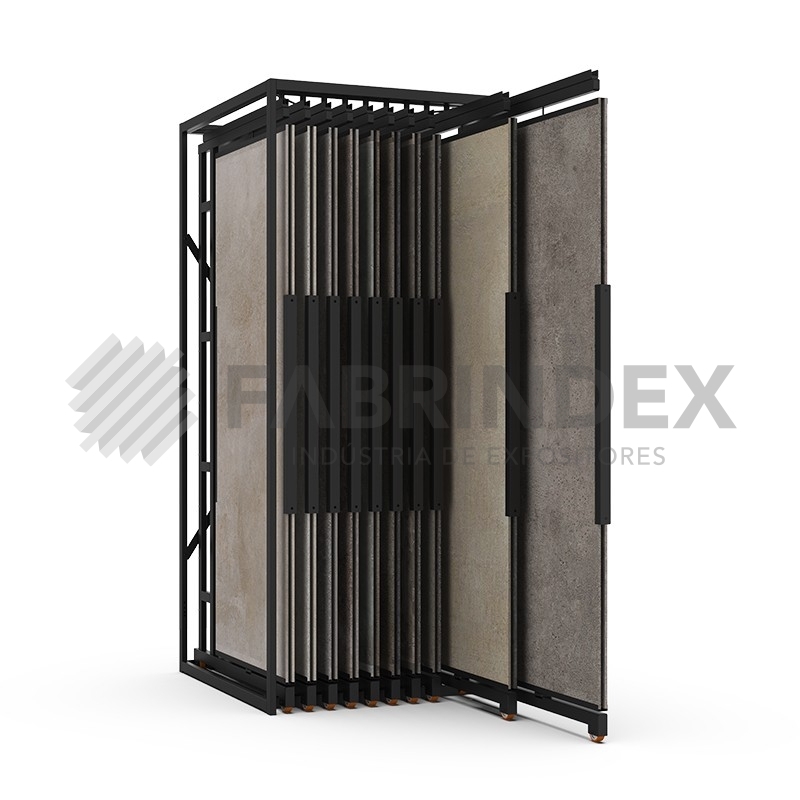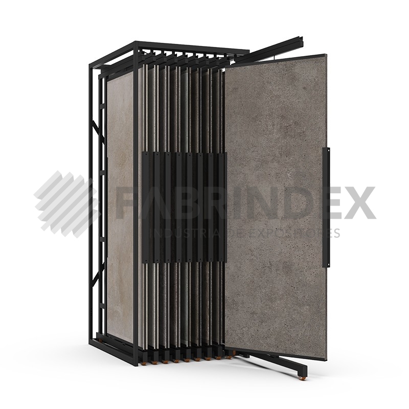 Expositor para expor revestimento e pavimento cerâmico em Lojas e Showrooms. Com 4, 6, 8, 10, 20 painéis deslizantes e rotativos de dupla face.