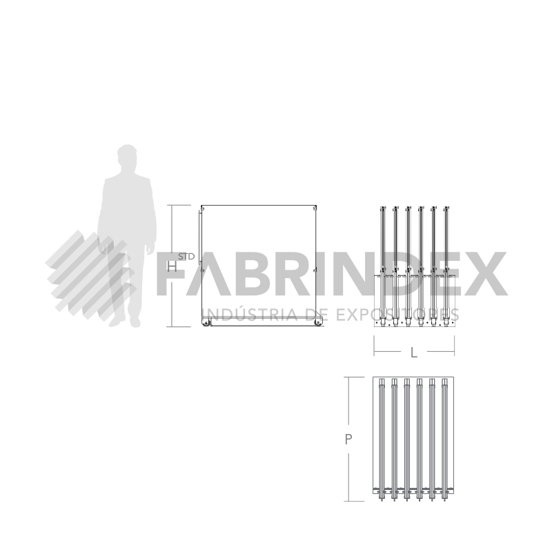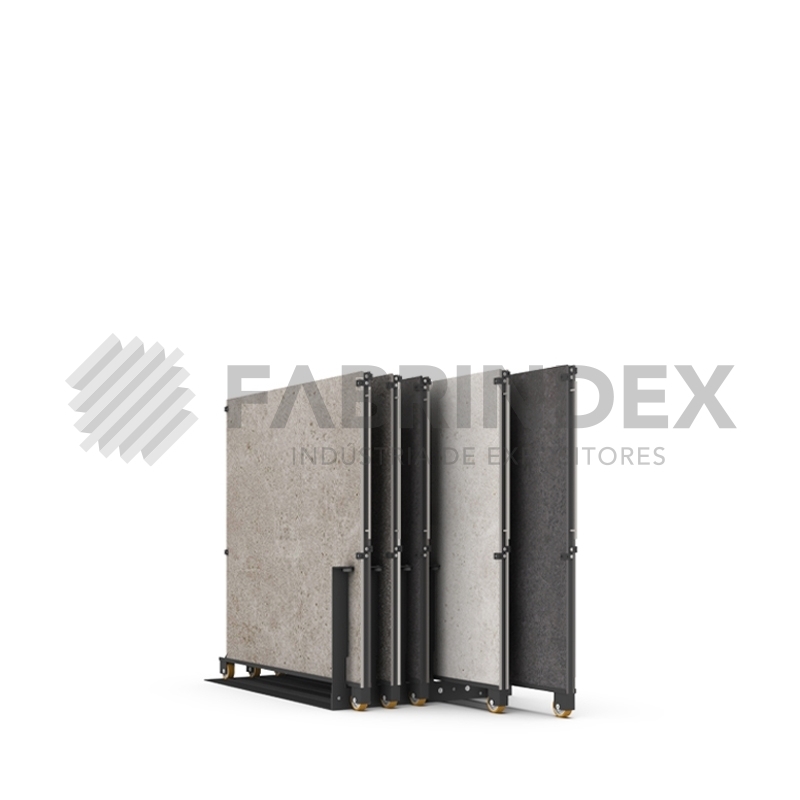 Expositor para expor revestimento e pavimento cerâmico em Lojas e Showrooms. Com 6 painéis de dupla face, deslizantes sobre uma base.