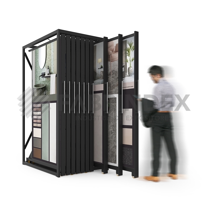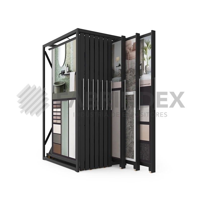 Expositor para expor revestimento e pavimento cerâmico em Lojas e Showrooms. Com 4, 6, 8, 10, 20 painéis deslizantes de dupla face.