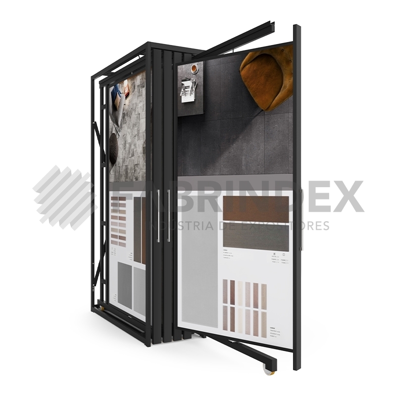 Expositor para expor revestimento e pavimento cerâmico em Lojas e Showrooms. Com 4, 6, 10, 20 painéis deslizantes e rotativos de dupla face.
