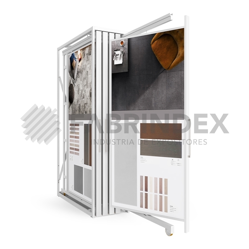 Expositor para expor revestimento e pavimento cerâmico em Lojas e Showrooms. Com 4, 6, 10, 20 painéis deslizantes e rotativos de dupla face.