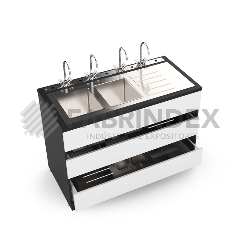 Móvel expositor com duas gavetas para Lava-Louças de Cozinha.Placa amovível para substituição.
