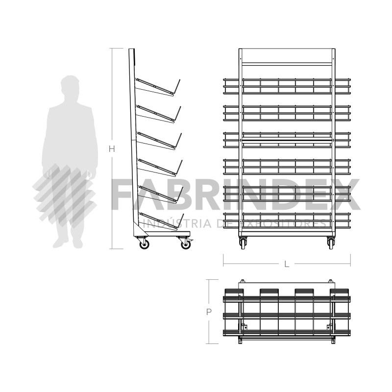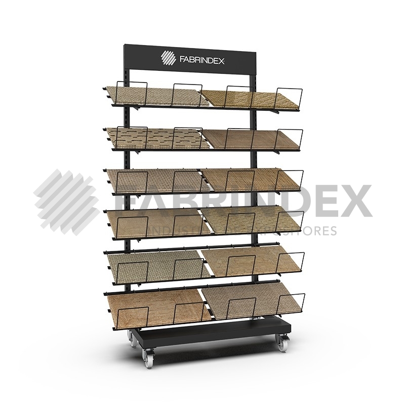 Expositor com 6 prateleiras com pala superior para colocar de logótipo/marca.
