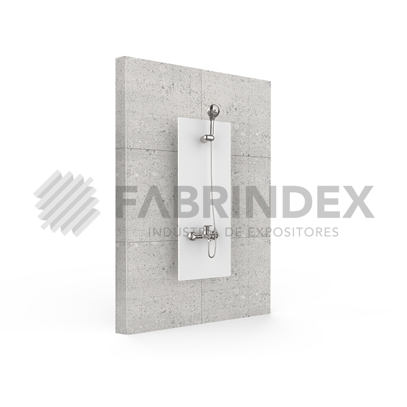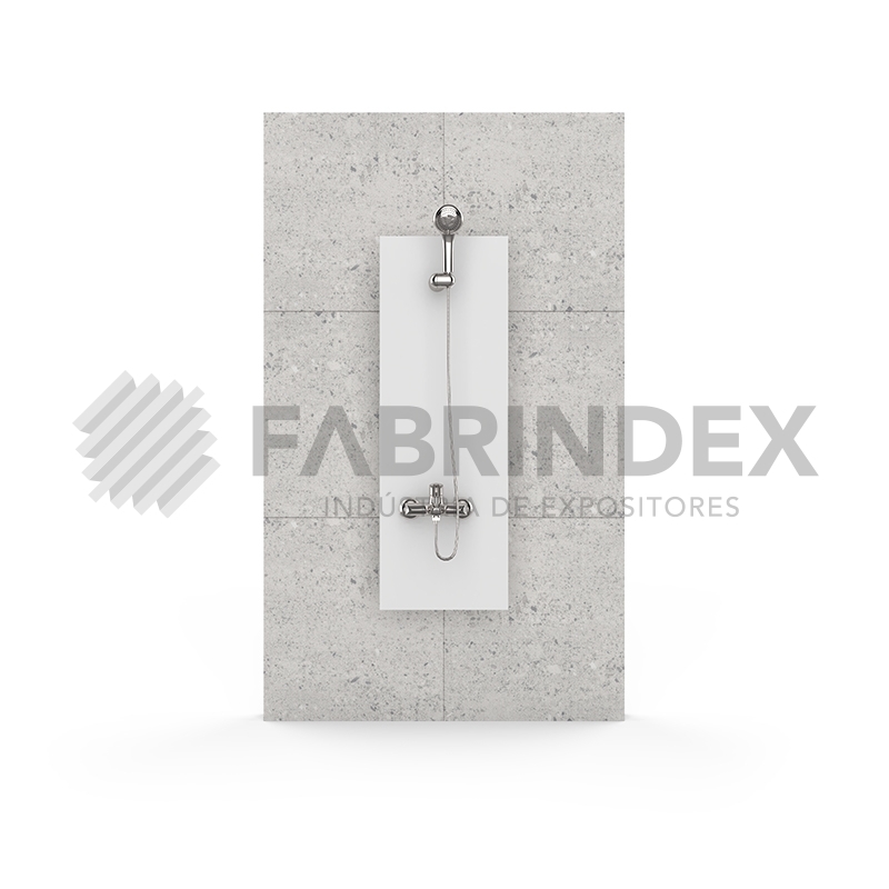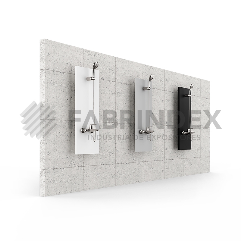 Expositor modular com um painel de madeira.Ideal para expor Colunas e Chuveiros.